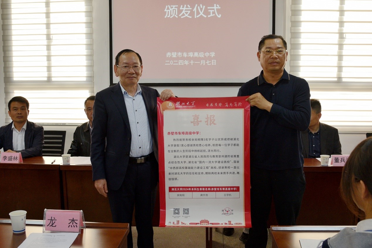 11月7日至8日,学院王世敏教授、叶正涛教授一行先后赴赤壁市车埠高级中学、嘉鱼第一中学开展招生宣传活动,并举办慈缘奖学金颁奖仪式。学院王世敏教授、叶正涛教授、董兵海教授,校学工处副处长、招生办公室主任占婧,学院党委副书记鲁力格格,办公室主任李静参加了活动。