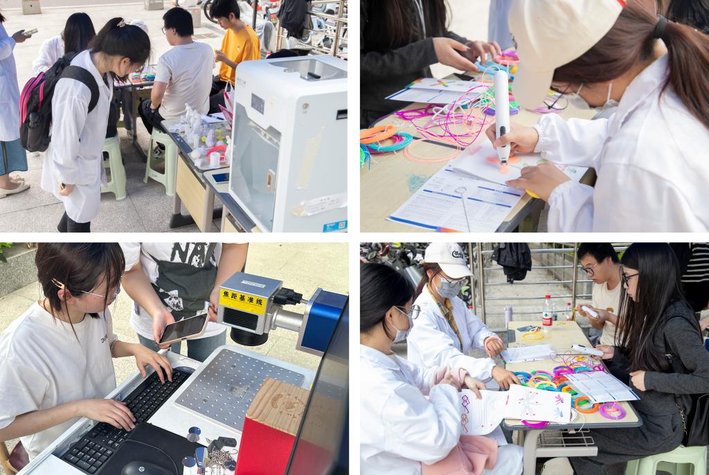 下午,系列活动在实训大楼前展开。在专家们的指导下,通过利用3D打印机打印模型的方式,同学们近距离地观察3D建模、打印的工作流程,激发同学们对3D建模的好奇心。随后,让同学们亲手利用3D打印笔构筑模型,切身感受3D建模的乐趣所在。一整天丰富而充实的活动收到了同学们的广泛好评。