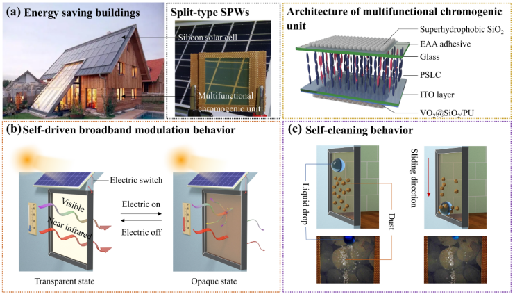 近日,9728太阳集团余黎副教授课题组在国际材料科学与技术领域顶级学术期刊《Advanced Functional Materials》上发表了题为“Broadband Modulation, Self-driven and Self-cleaning Smart Photovoltaic Windows for High Efficiency Energy-Saving Buildings”(DOI:10.1002/adfm.202308312)的研究论文。硕士生那宗旭与新加坡南洋理工大学博士后梁霄为论文共同第一作者,余黎副教授、北京科技大学王茜副研究员和北京大学杨槐教授为共同通讯作者,太阳成集团tyc9728为第一完成单位。