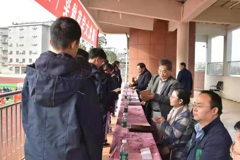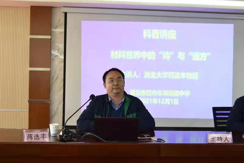 下午,王世敏一行来到赤壁市车埠高级中学举行慈缘奖(助)学金颁发仪式,为十二名受助学生颁发奖助学金。赤壁市政府副市长甘志宝、市政府办副主任王莉、教育局局长朱翔,车埠高中党委书记吕路、校长龙成名以及全校师生参加了仪式。随后,蒋选丰教授为车埠高中学生作题为《新材料中的“诗”与“远方”》科普讲座。