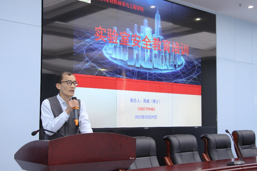 为进一步加强学院实验室安全管理,9728太阳集团于2022年3月29日上午在2001报告厅开展研究生实验安全教育培训,党委副书记鲁力格格发表讲话,周威老师做实验室安全教育报告。