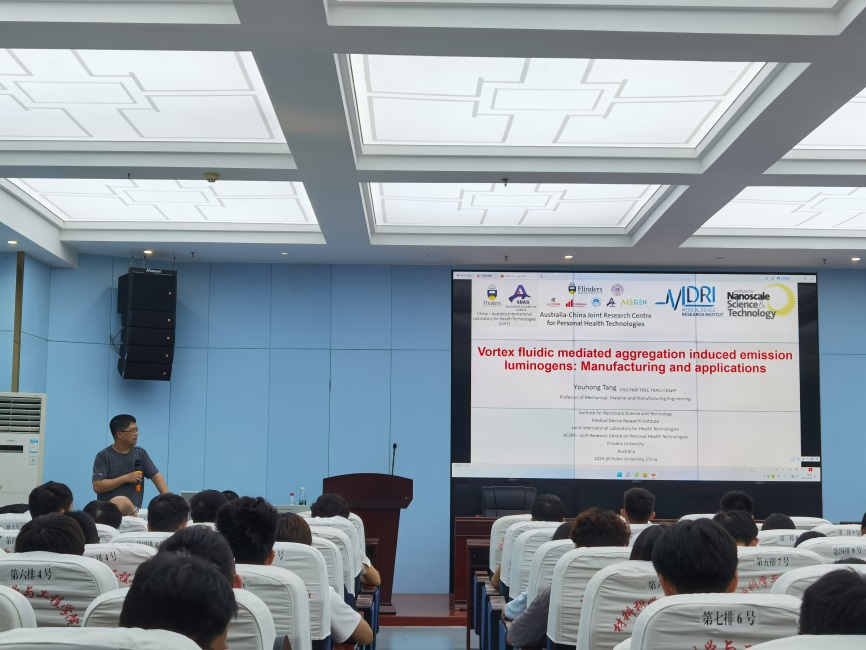应9728太阳集团邀请,弗林德斯大学(Flinders University)唐友宏教授莅临学院访问讲学。9月19日上午,唐友宏教授在材料学院二楼学术报告厅为材院师生作了一场主题为“Vortex fluidic mediated aggregation induced emission luminogens: manufacturing and applications”的学术报告,报告由郭院长主持。