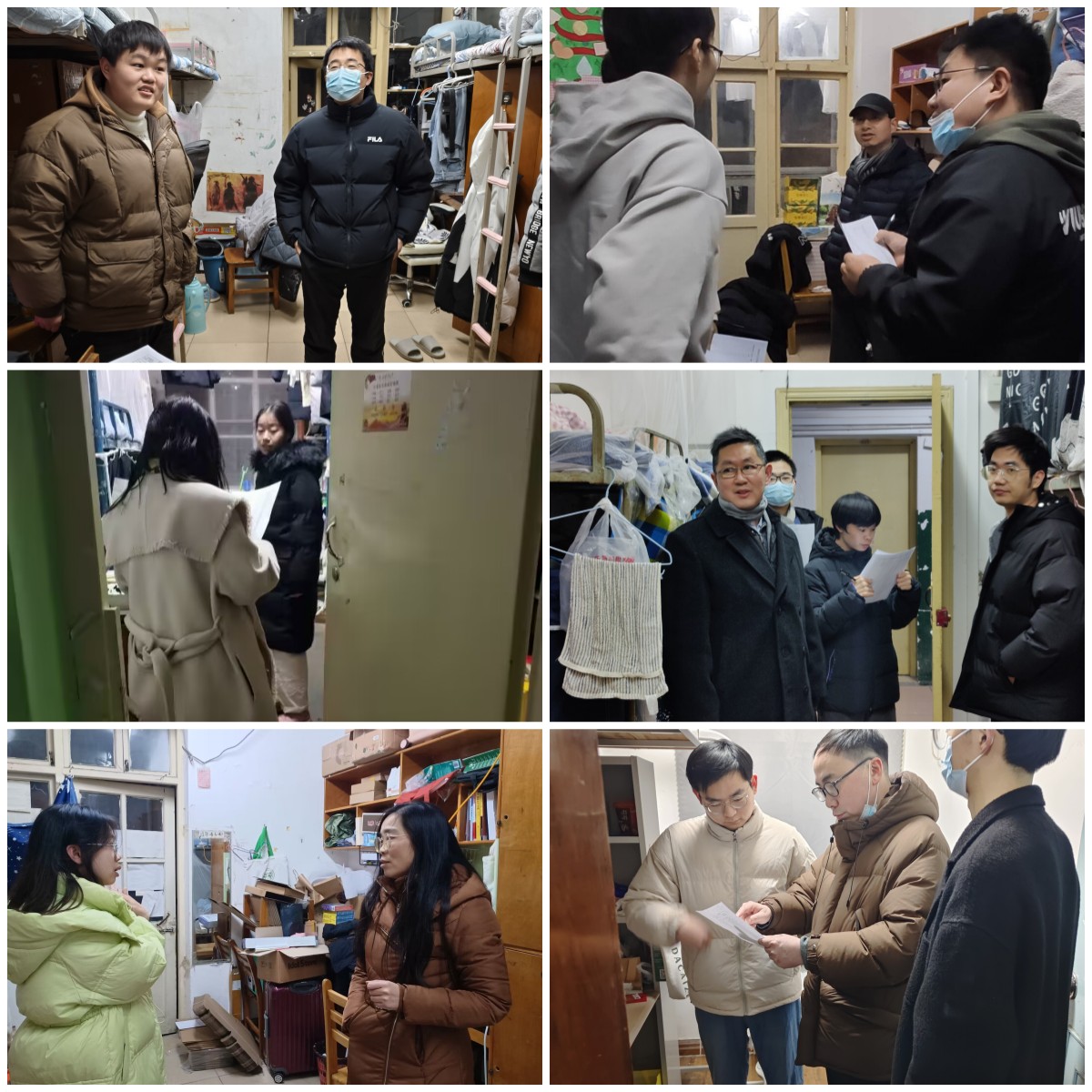 为切实做好寒假留校学生的学习和生活保障,1月21日晚,学院党委书记陈亮,院长郭志光,党委副书记鲁力格格,副院长施德安、夏晓红、梅涛带领辅导员一行深入寝室走访看望寒假留校学生。