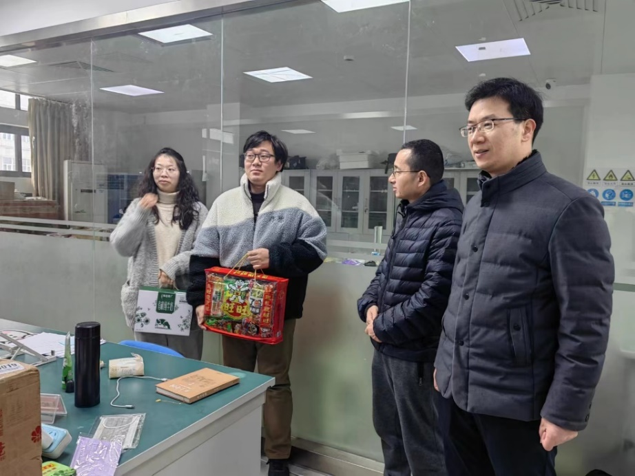 在新春佳节来临之际,武汉市持续遭受大范围雨雪冰冻天气,给留校学生生活带来了较大影响。2月6日上午,校党委研究生工作部副部长李明、院长郭志光、院党委副书记鲁力格格、副院长夏晓红、研工部税卫华一行五人走进学院实验室,看望慰问仍奋战在科研一线的寒假留校学生,向他们送上了暖心大礼包和新春祝福。