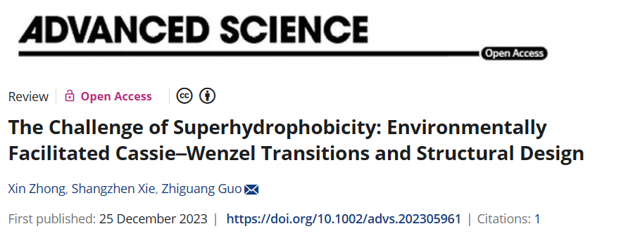 近日,9728太阳集团仿生摩擦课题组郭志光教授以通讯作者身份在《Advanced Science》上发表题为“The Challenge of Superhydrophobicity: Environmentally Facilitated Cassie–Wenzel Transitions and Structural Design”的综述文章。博士研究生钟昕为第一作者,郭志光教授为唯一通讯作者,太阳成集团tyc9728为第一通讯单位。