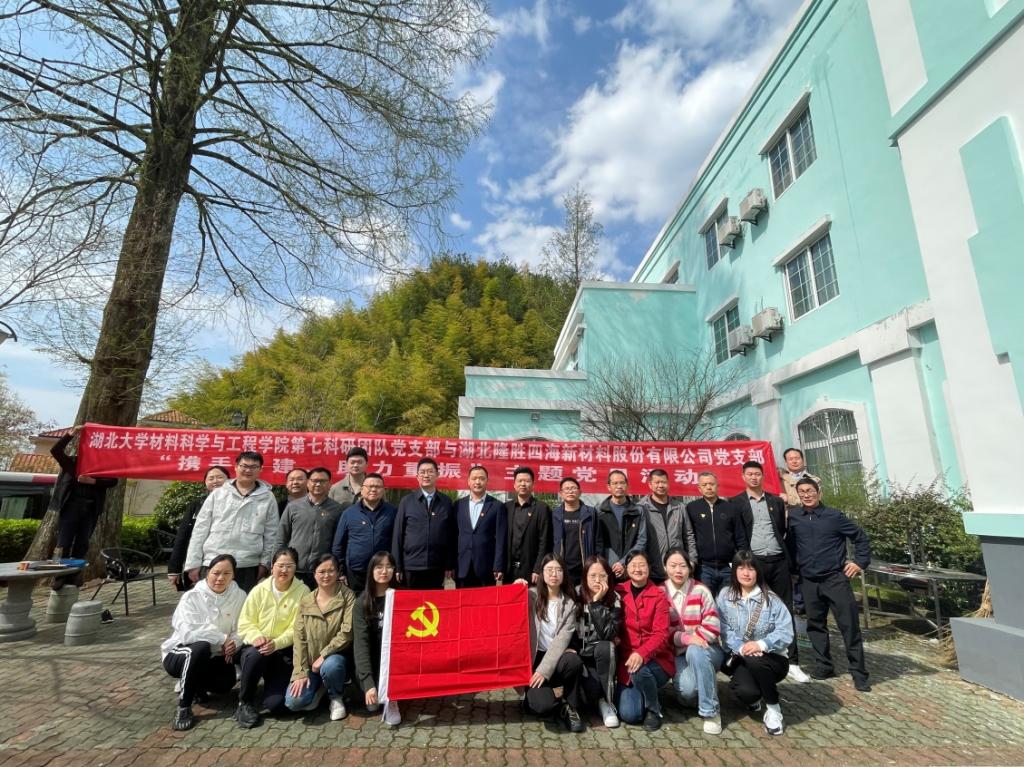 4月8日,我院科研团队第七党支部前往罗田县与湖北隆盛四海新材料股份有限公司党支部共同开展“携手共建、助力重振”主题党日活动。隆胜四海新材料股份有限公司党支部书记、总经理杨帆,材料学院党委书记宋韧、副院长施德安、科研团队第七党支部书记张群朝等党员代表26人共同参加活动。