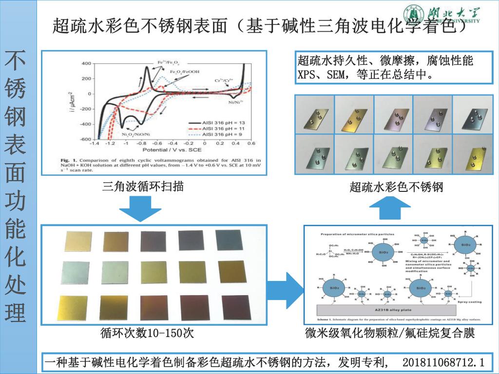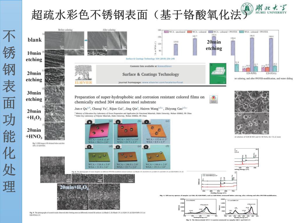 (5)功能材料绿色制备与应用教育部重点实验室(太阳成集团tyc9728),基于无铬三角波着色及SiO2/硅烷复合涂层构筑彩色超疏水不锈钢的研究。