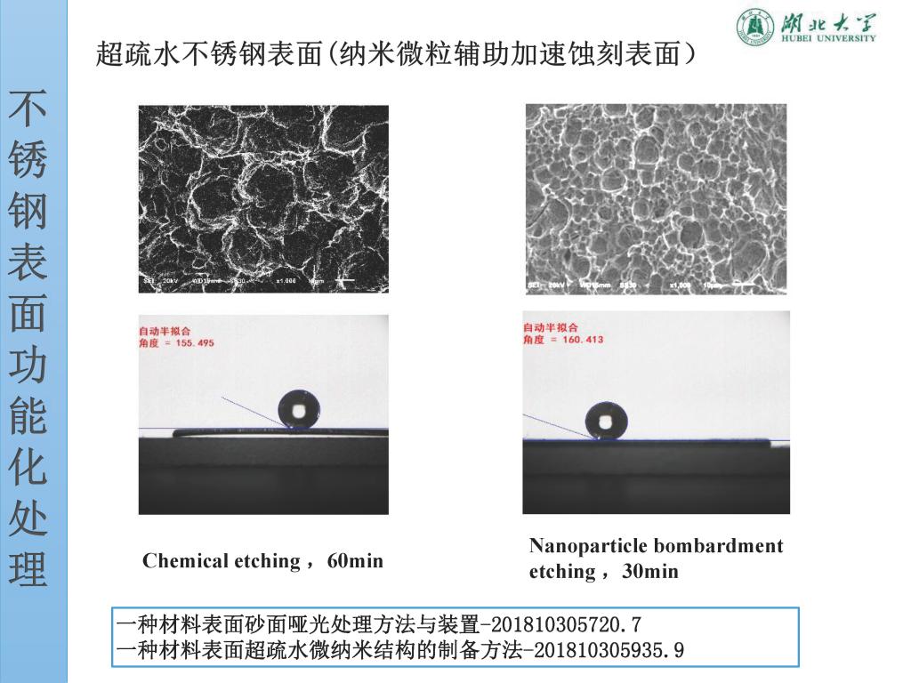 (10)屈钧娥;秦静;刘战祥;朱凯;王海人;尹习习;一种基于方波蚀刻的哑光型彩色超疏水不锈钢的制 备方法, 2020-01-14,中国, CN201910393399.7