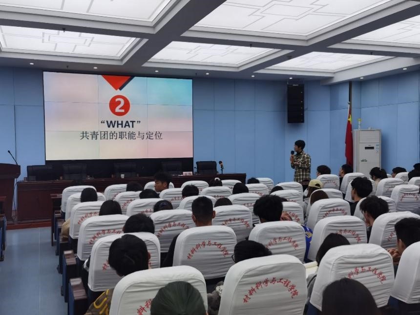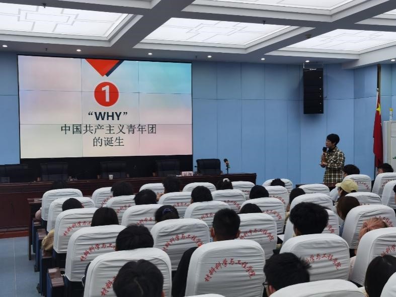 团课第一项的主题为“WHY”,甘书记围绕中国共产主义青年团的发展史向同学们介绍了中国共产主义青年团成立的历程,引导学生们树立奋发图强的信念以及成为党的有力助手和可靠后备军的信心。