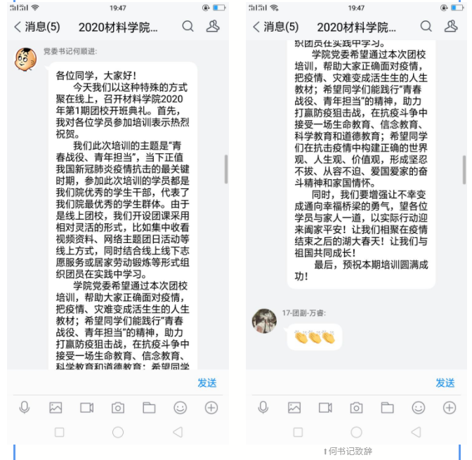 为深入贯彻落实习近平总书记关于防控新型冠状病毒感染肺炎疫情的重要指示精神和党中央、国务院的重要部署,进一步做好疫情防控期间团员青年的思想引领工作,帮助大家正确面对疫情,打赢防疫阻击战,我院团委于3月4日晚19:00举办2020年第一期团校开班仪式。