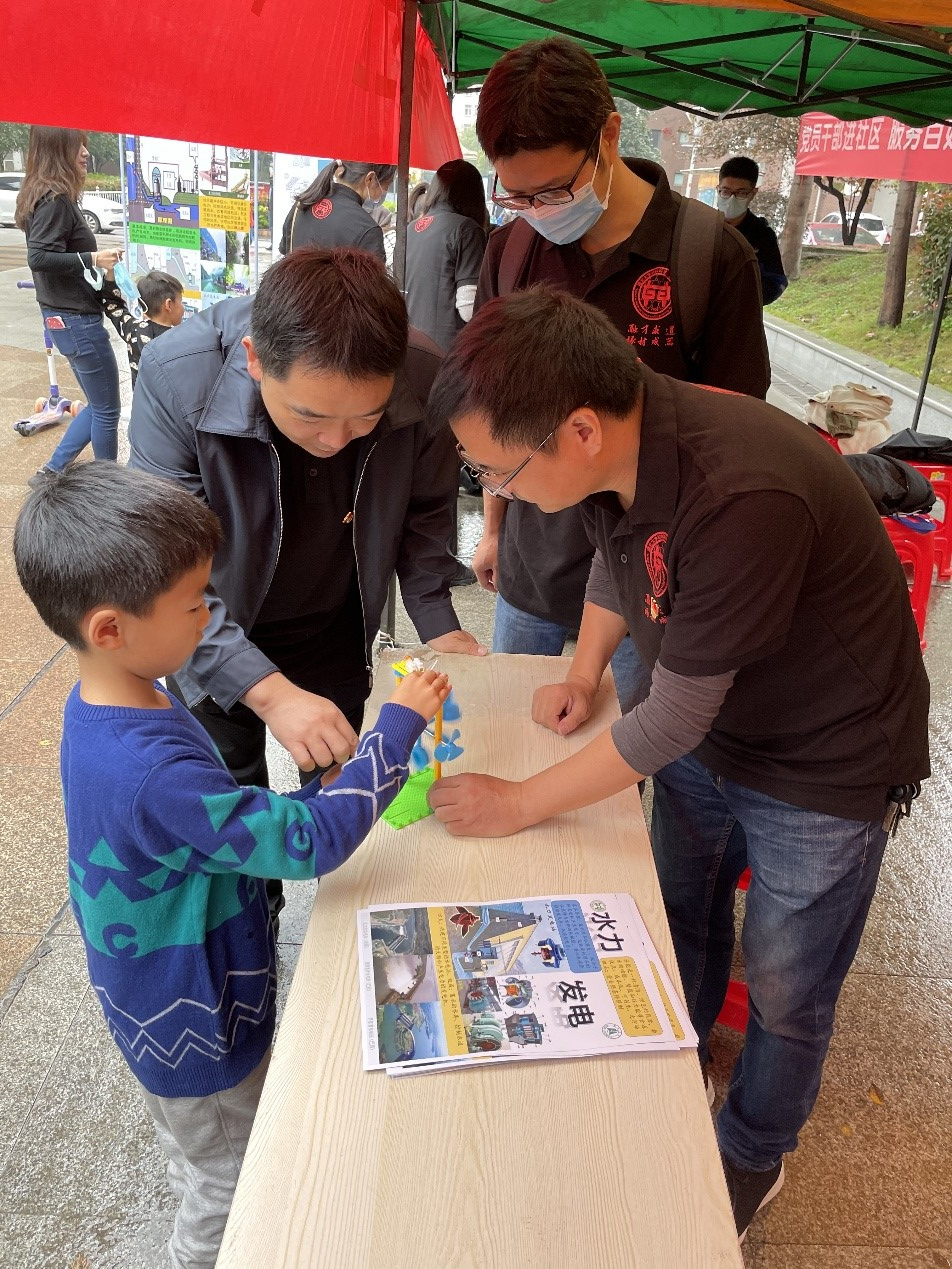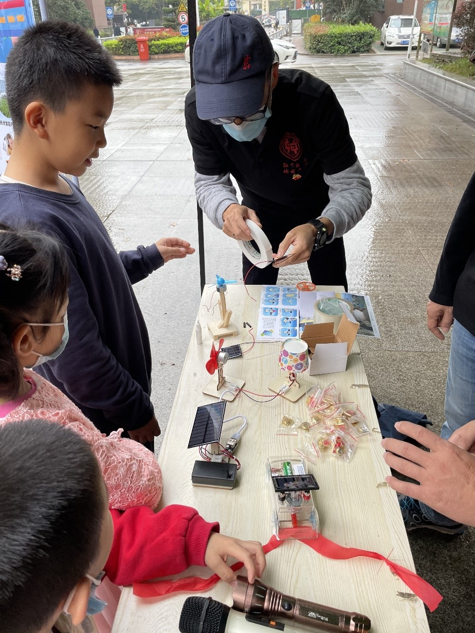 现场活动进行得如火如荼,琴园社区的居民对这些新的能量转化装置表现出了极高的兴趣和热情,与学院教师对新能源、新材料等方面的研究热点进行深入交流。同时,此次活动也提高了居民对科学的兴趣,也为社区小朋友们埋下了一颗科学的种子。