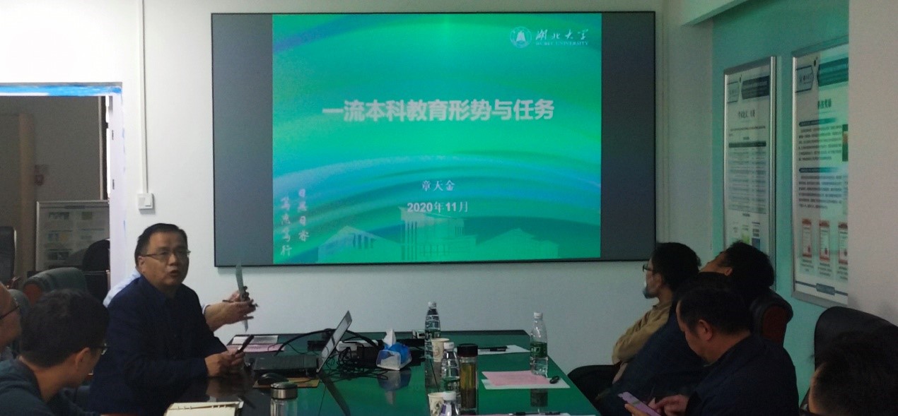 章天金做了题为“新时代一流本科教育形势与任务”专题讲座,提出中国本科教育进入新时代,要明确一流本科建设的新路径,提出变轨超车新概念,制定多项“双万”新举措,谋划“西三角”新布局,树立本科教育新理念,丰富高等教育新学理;指出一流本科教育任务的设计要切实落实四个会议精神、推进一流本科教育建设,加强教学改革与研究、重点培育国家级教学成果奖申报,深化创新创业教育,提升学生自主创新创业能力等系列任务;解读了《太阳成集团tyc9728加强在线开放课程建设应用与管理的实施办法》、《太阳成集团tyc9728一流本科教育“12310”模式》等政策文件精神,对专业改革和发展提出了建设性意见和建议。